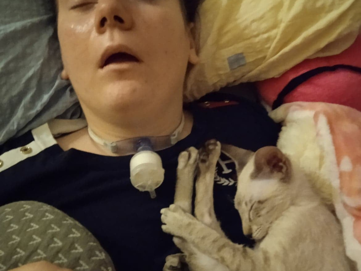 Na OIOM spędziła 2 miesiące, przeszła śmierć kliniczną, sepsę i kilkaset ataków padaczki na dobę, Ciężkie infekcje wyniszczyły jej wątłe ciało. Wiem, że jedną nogą była po tamtej stronie, ale jakaś siła sprawiła, że została. Wygrała walkę o życie, teraz walczy o zdrowie. Życie pisze czasem okrutne scenariusze, ten wypadek odebrał jej marzenia, plany a pozostawił cierpienie i łzy. Sandra nie może zostać sama nawet na chwilę, musi być ktoś przy niej 24 godziny na dobę, pilnować czy oddycha – ma rurkę tracheostomijną, zmieniać pampersy, podawać jedzenie przez PEG-a.