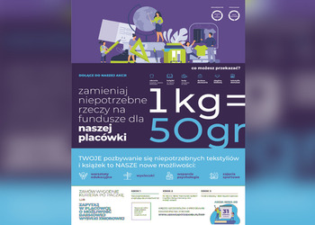 Nie wyrzucaj — oddaj! Razem dajemy ubraniom drugie życie, chronimy środowisko i wspieramy naszą szkołę. Każda przekazana rzecz to mniej odpadów, więcej dobra dla planety i realna pomoc dla naszej szkolnej społeczności. Kampanię tworzymy, ponieważ zależy nam na budowaniu świadomości ekologicznej oraz integracji całej społeczności wokół wspólnego, ważnego celu — dbania o środowisko i wspierania rozwoju naszej szkoły.